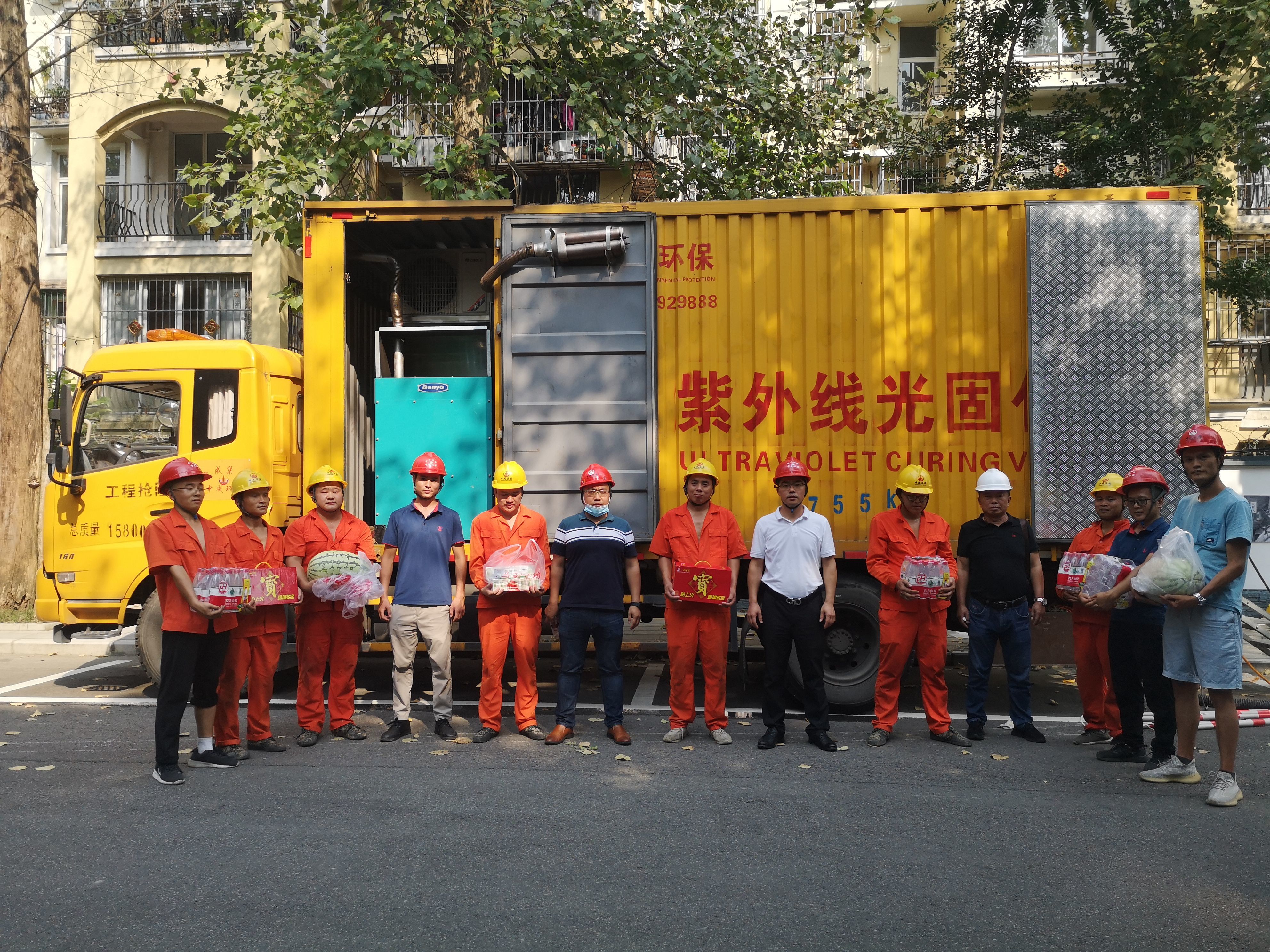8月15日,8040www威尼斯党委委员、副总经理苏少华到温江非开挖修复项目开展夏季送清凉慰问,为项目一线职工送上藿香正气液、凉茶、矿泉水、西瓜等防暑降温物资。