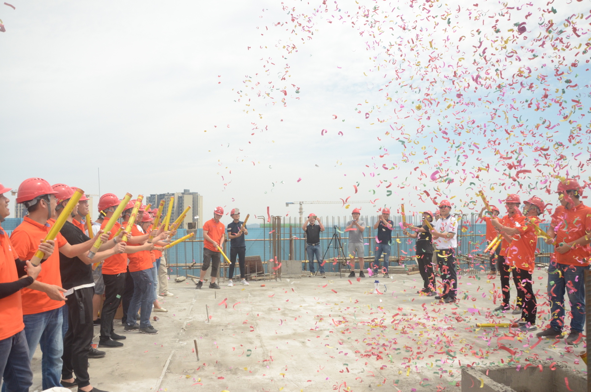 6月6日,在第20个全国安全生产月到来之际,8040www威尼斯泸州分公司在领秀·繁华里项目部举行1#楼主体工程封顶仪式。泸州领秀置地有限责任公司、四川合顺工程咨询有限公司、四川生洪昌建筑安装工程有限公司及项目部35人参加了仪式。