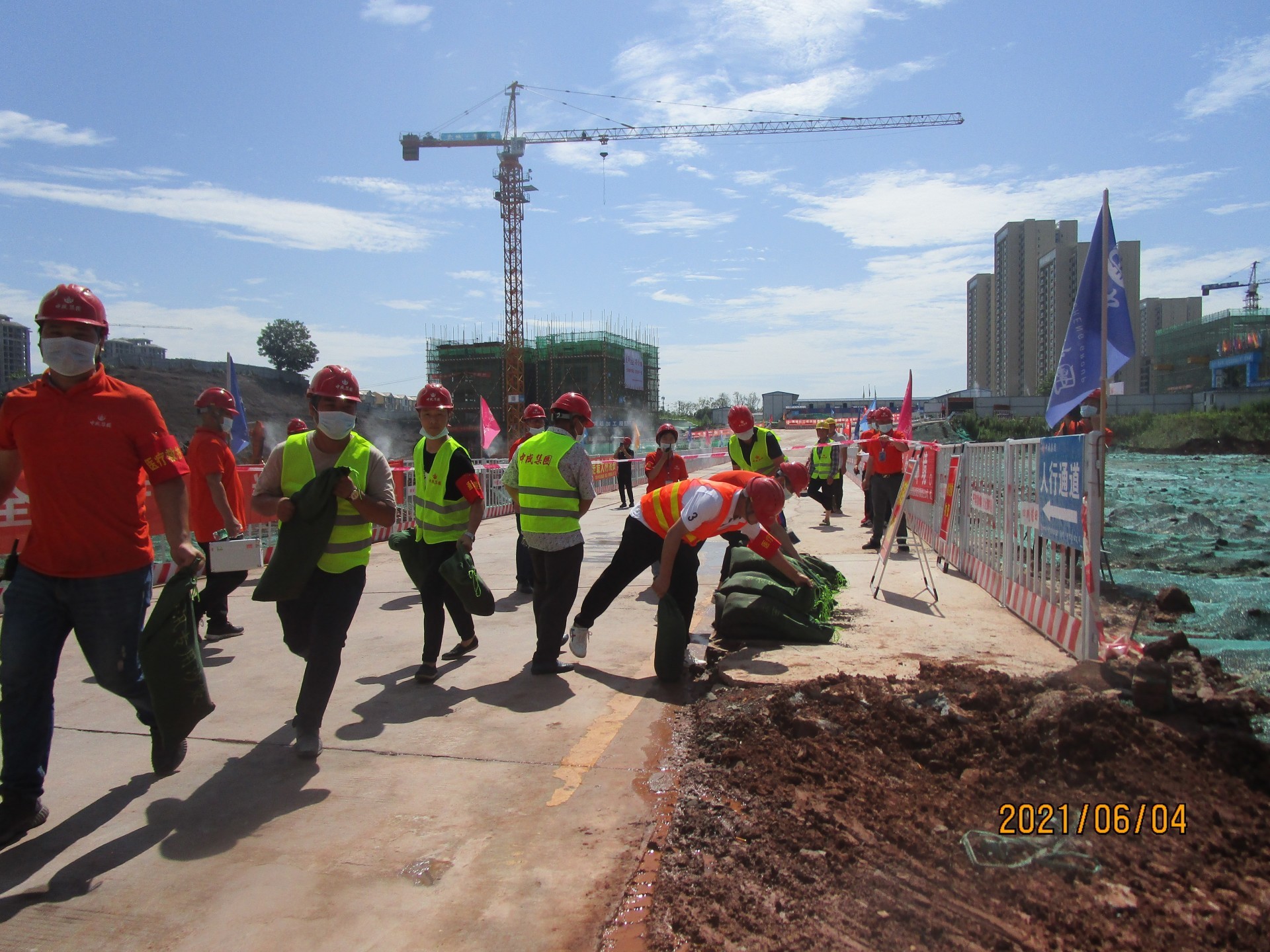 启动仪式结束后,全体人员移步至2#楼观摩台,演练总指挥唐银军宣布消防应急预案演练正式开始。项目部各小组人员按既定方案有序开展了消防灭火演练和防洪防汛应急预案演练。