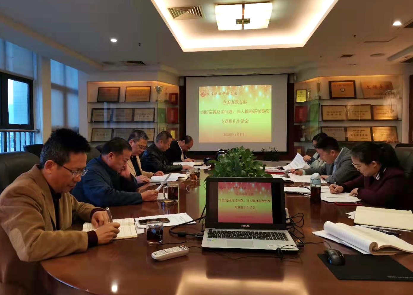 为深入学习习近平新时代中国特色社会主义思想和党的十九大精神,高站位、高质量推进巡视反馈问题整改,不断促进支部党员干部提高拒腐防变能力和廉洁自律意识。11月17日,党委办党支部召开“剖析巡视反馈问题,深入推进巡视整改”巡视整改专题民主生活会,对照巡视整改反馈意见要求,认真开展批评与自我批评。集团党委书记柯军及4名局管干部以普通党员身份参会,会议由党支部书记刘建刚主持。