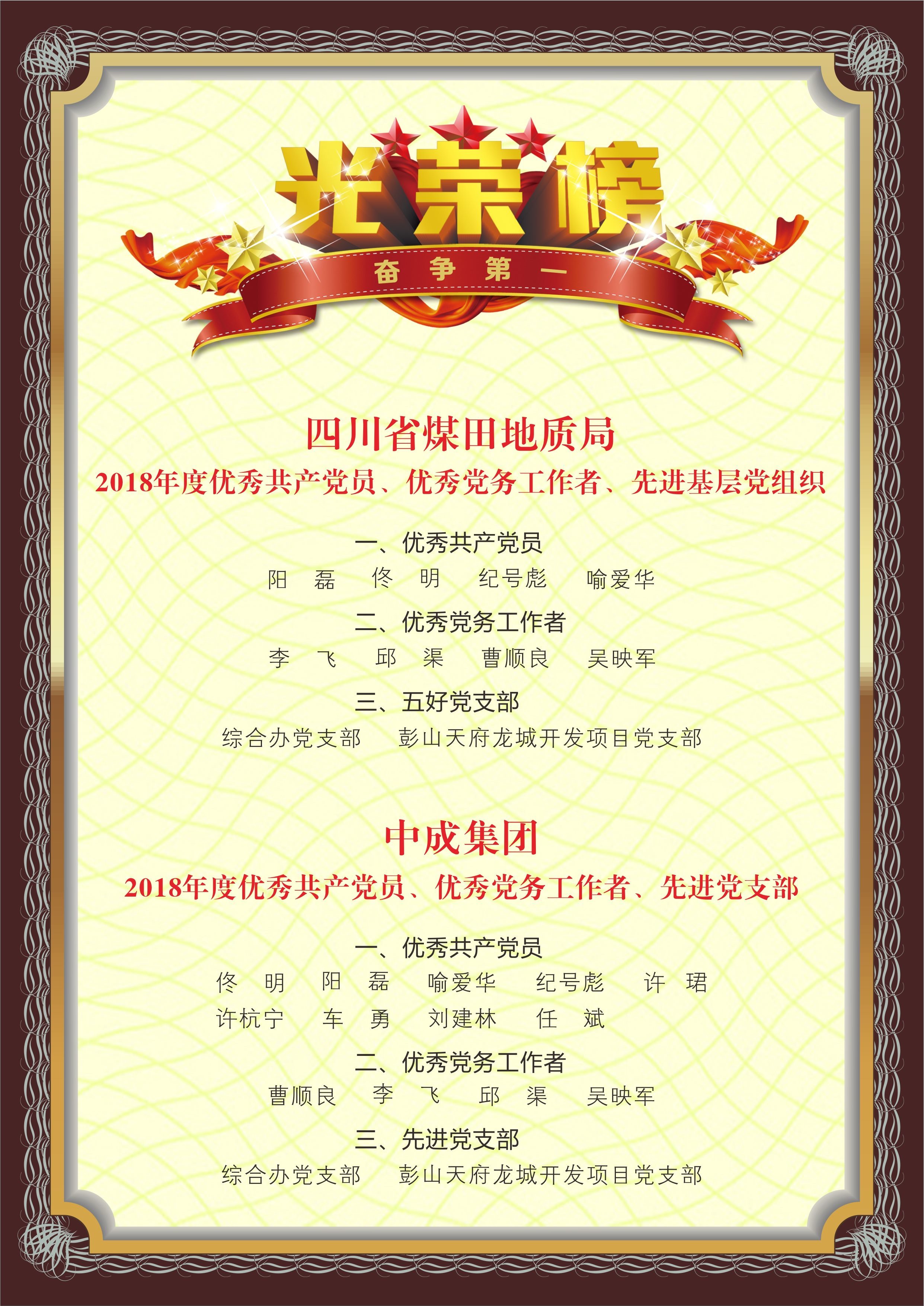 光荣榜——2018年度优秀共产党员、优秀党务工作者、先进党支部