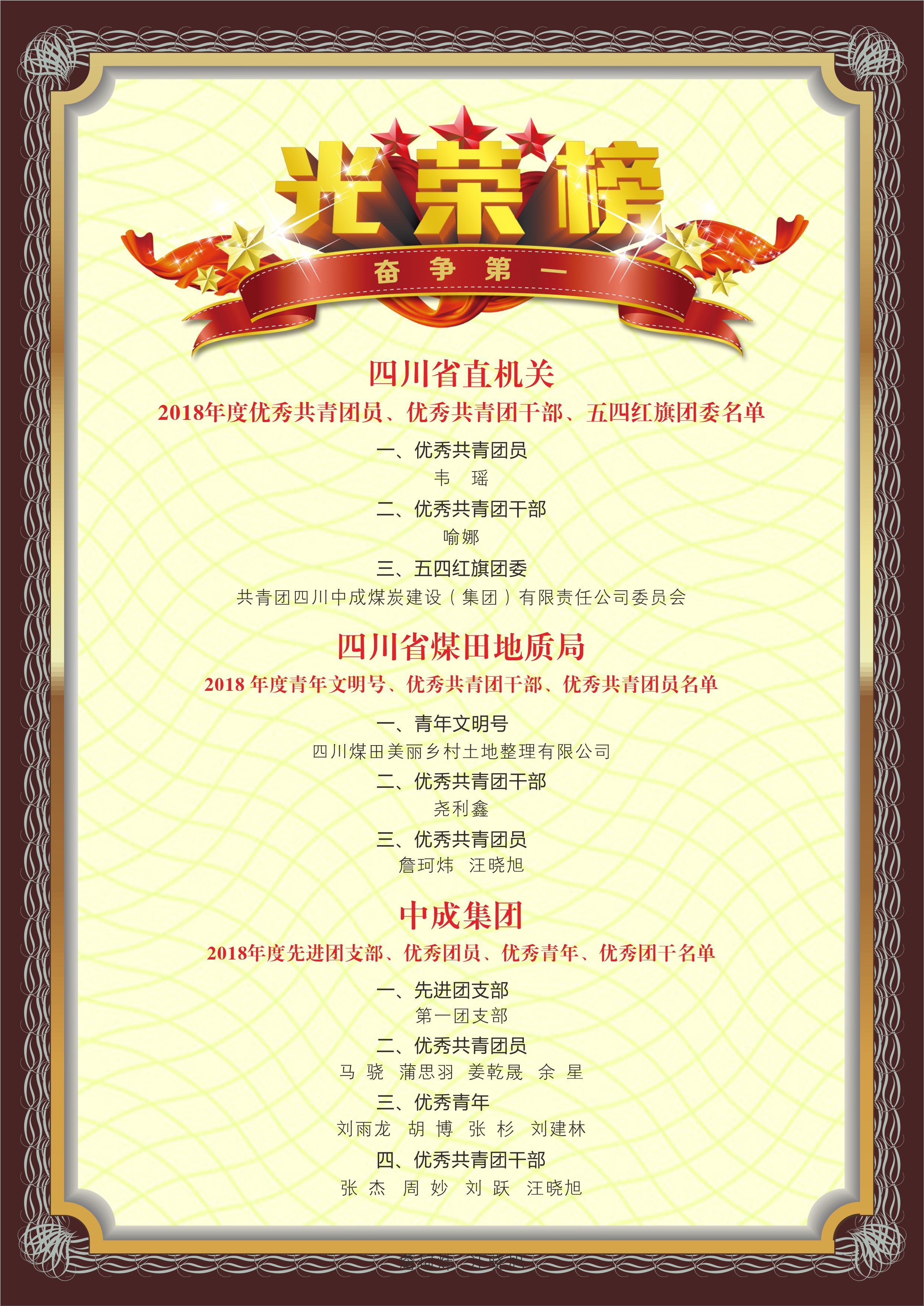光荣榜——2018年度优秀共青团员、优秀共青团干部、先进团支部